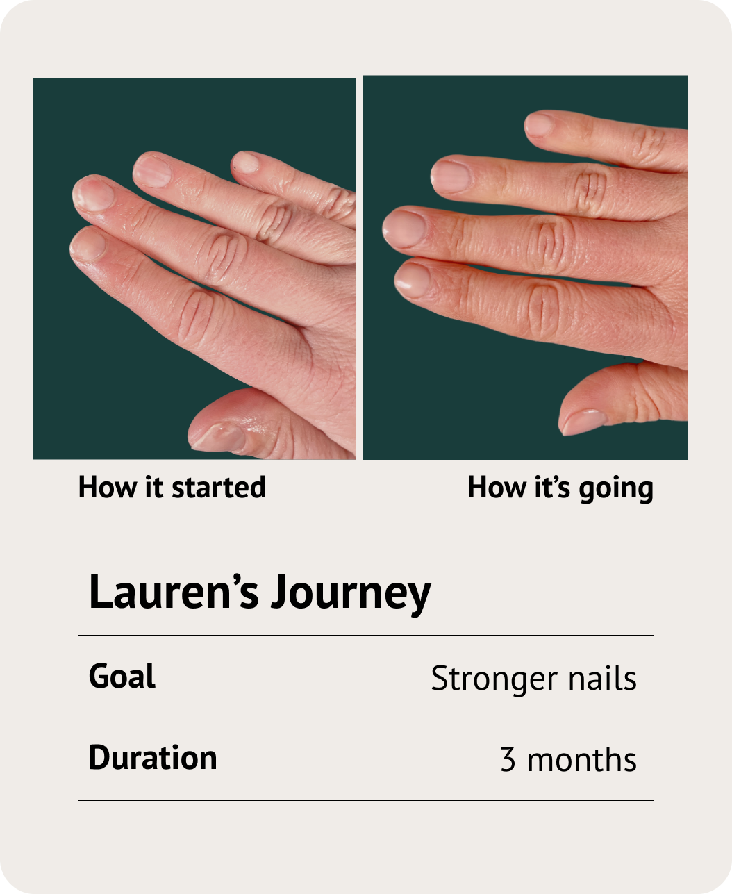 90% of our customers experienced noticeable hair growth, stronger nails, and glowing skin*